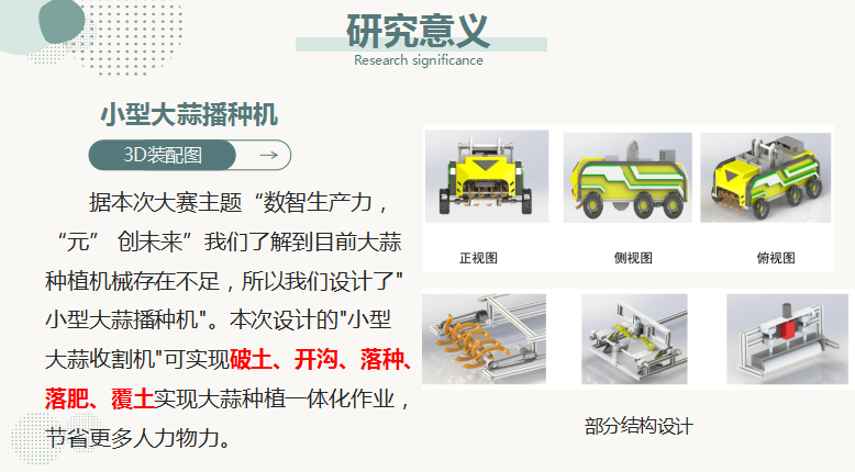创新基地第二小队(指导教师:谭志德、陈智 ,成员:李嘉婧、谭东明、谭楠、秦小鹏、吕海忠 )的作品 《小型大蒜播种机》