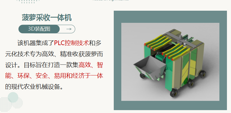 创新基地第三小队(指导教师:韦永豪、韦献雅 ,成员:裴小鹏、黄思聪、林思彤、陈石焕 )的作品 《菠萝采收一体机》