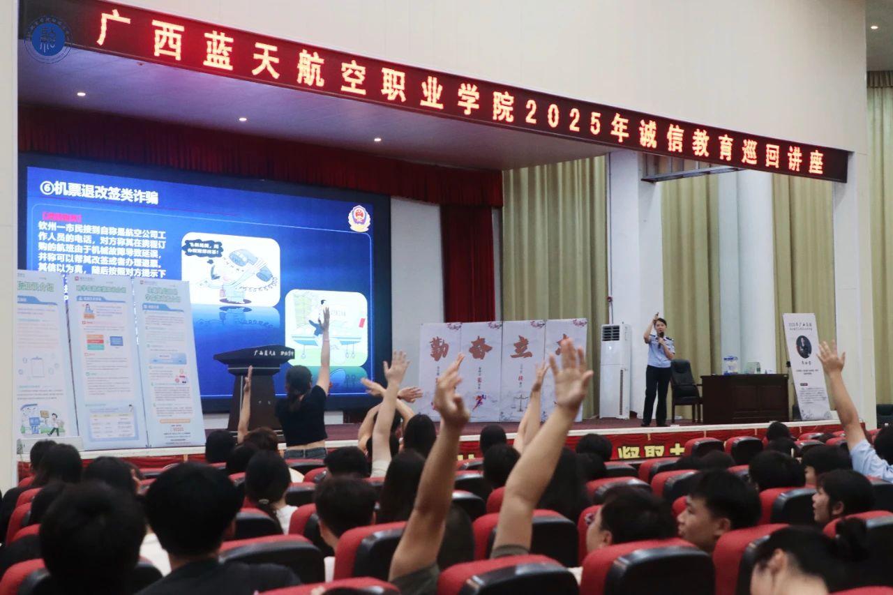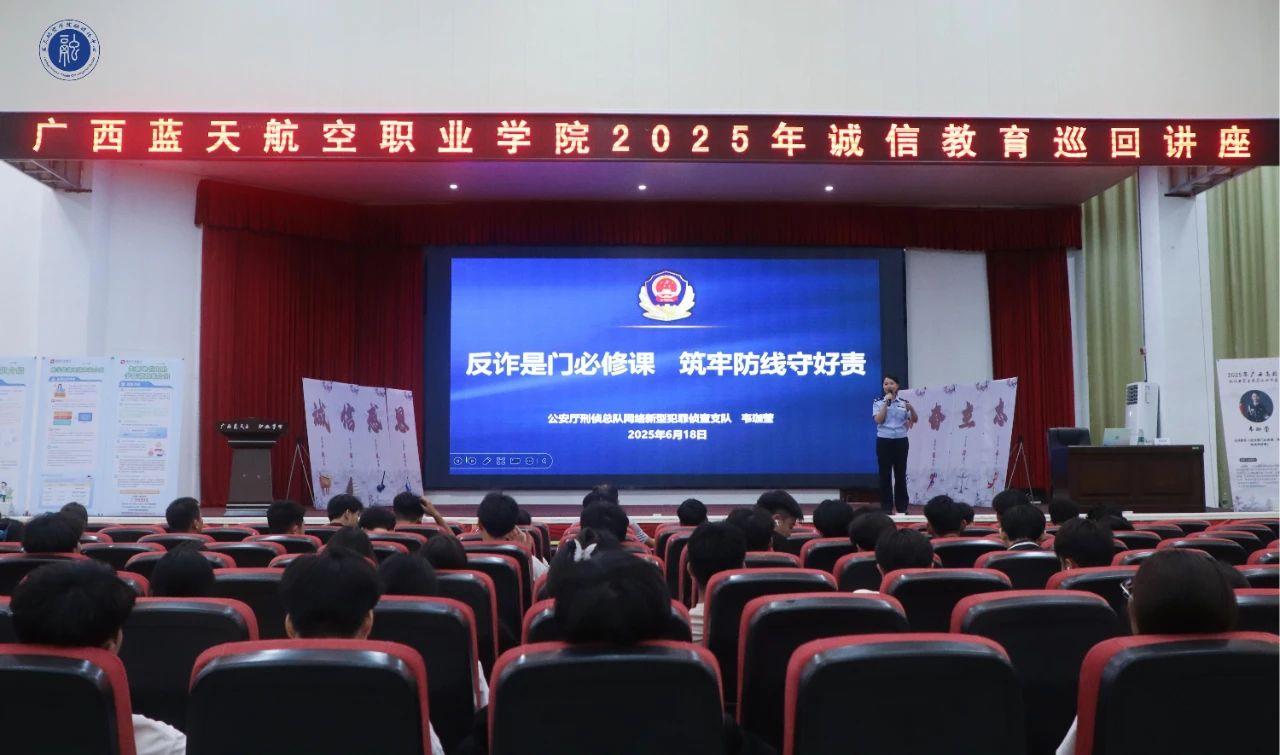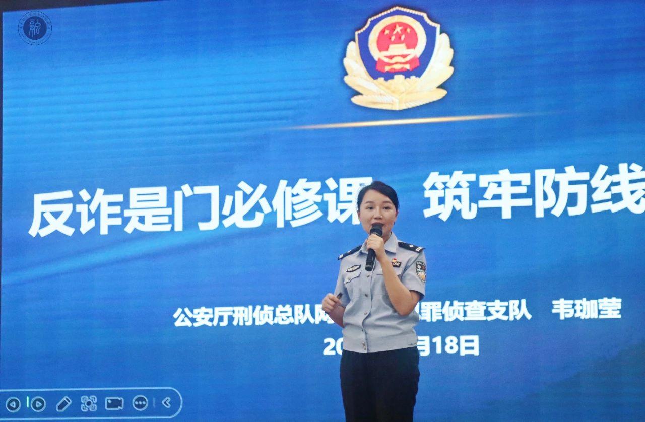 根据自治区教育厅办公室关于开展 2025 年全区高校学生资助“诚信教育主题月”活动的通知要求,为提高学生防诈反诈意识、增强资助育人成效,6月18日晚,广西壮族自治区公安厅刑事侦查总队网络新型犯罪侦查总队警务技术一级主管、刑侦总队团支部书记韦珈莹莅临我校进行了《反诈是必修课,筑牢防线守好责》专题讲座。