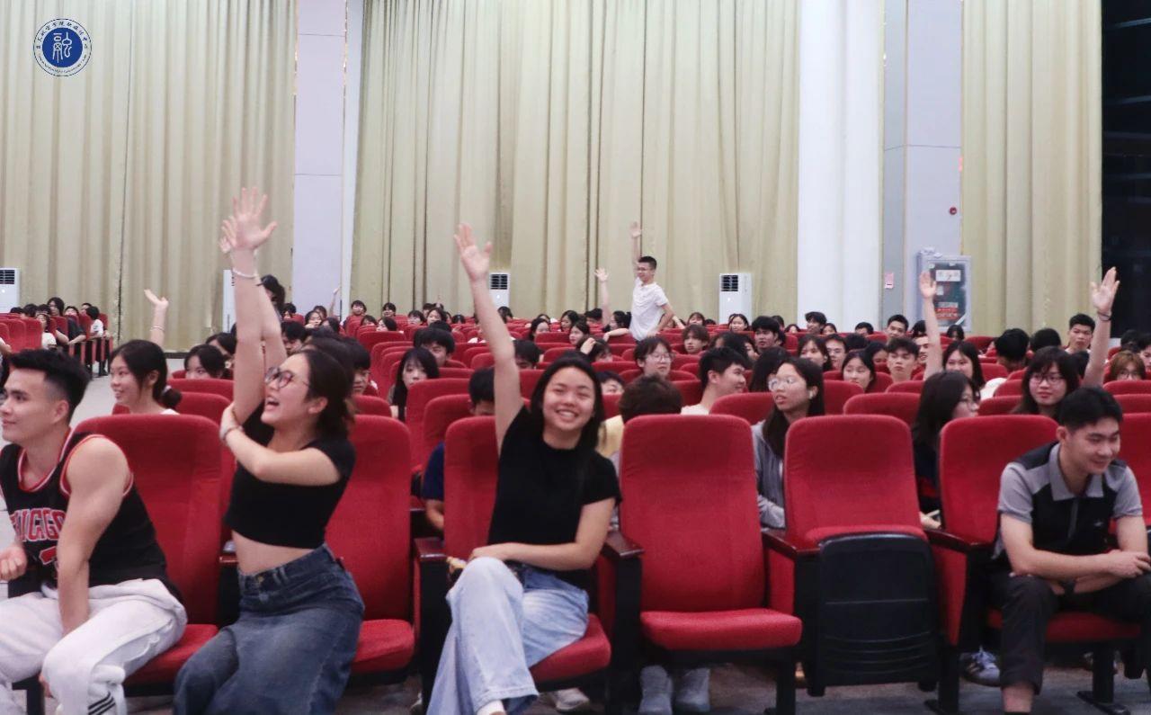 讲座中,韦珈莹警官凭借丰富的专业知识和实践经验,从电信网络诈骗的演变过程,到当前电信网络诈骗的严峻形势和挑战进行了详细讲解。结合当下一些典型案例,如刷单返利、网络交友、冒充公检法等,以防诈六字口诀“借贪、慎爱、别怕”在课堂上跟同学们进行了精彩的互动。