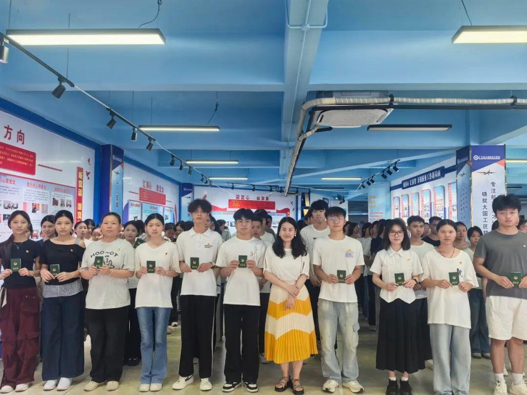 我校团委于7月1日在“红心向党 奋进蓝航”党建主题展厅举行了以“青春礼赞,逐光而行”为主题的广西蓝天航空职业学院2025年新团员入团仪式。参加本次仪式的有校团委书记、各二级学院团总支书记、2025年度新发展团员代表等。本次仪式由航空管理学院团总支书记蒋小玲主持。