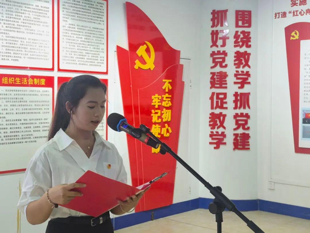 校团委书记黎柳向新入团的同学们表示热烈祝贺,她指出7月1日建党节的特殊意义,并对新老团员提出了殷切期望。她强调,共青团是党的助手和后备军,广大团员青年要坚定理想信念,听党话、跟党走,要勤奋学习,努力提高自身素质,掌握过硬本领,将个人的成长与国家的发展紧密结合起来。