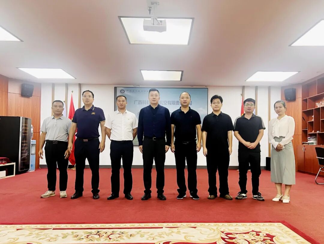 广西科虹通用航空有限责任公司总经理和党支部书记于2025年9月9日莅临我校进行考察洽谈,学校副校长孟凡及无人机学院院长梁森、培训学院副院长黄冲等人员参加洽谈会。双方围绕低空经济发展新机遇,展开深入交流探讨。