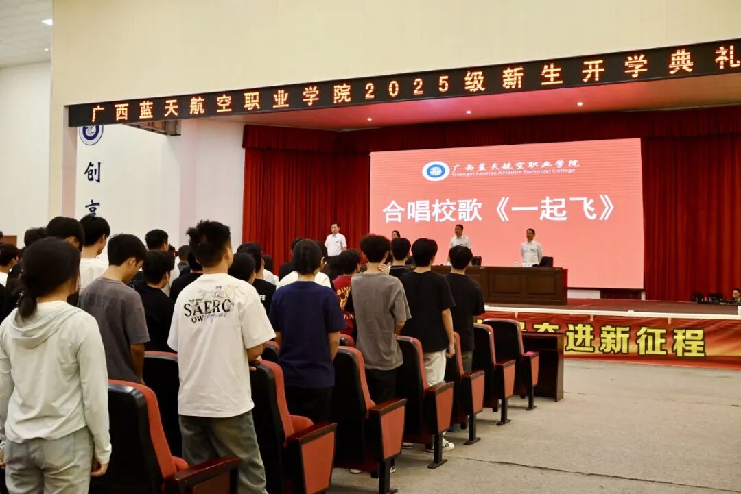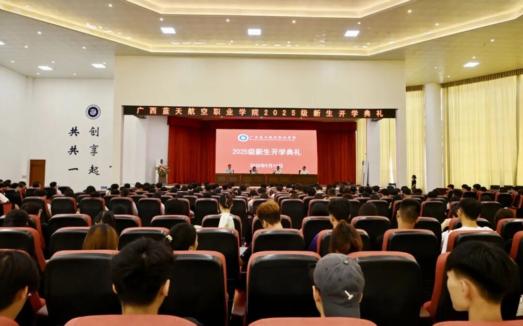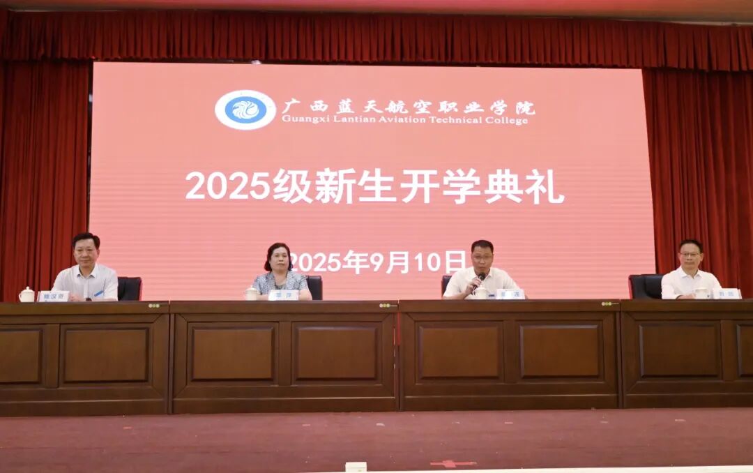 金秋九月,青春启航。9月10日上午,广西蓝天航空职业学院2025级新生开学典礼在天宫楼报告厅举行。学校常务副校长覃萍,党委副书记、纪委书记姚汉奇,总会计师刘旭,各单位负责人、教师代表及全体2025级新生参加了典礼。典礼由党委副书记、政府督导专员秦樟连主持。