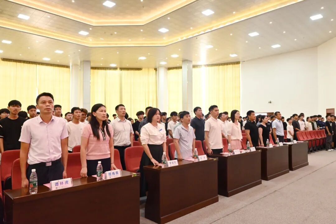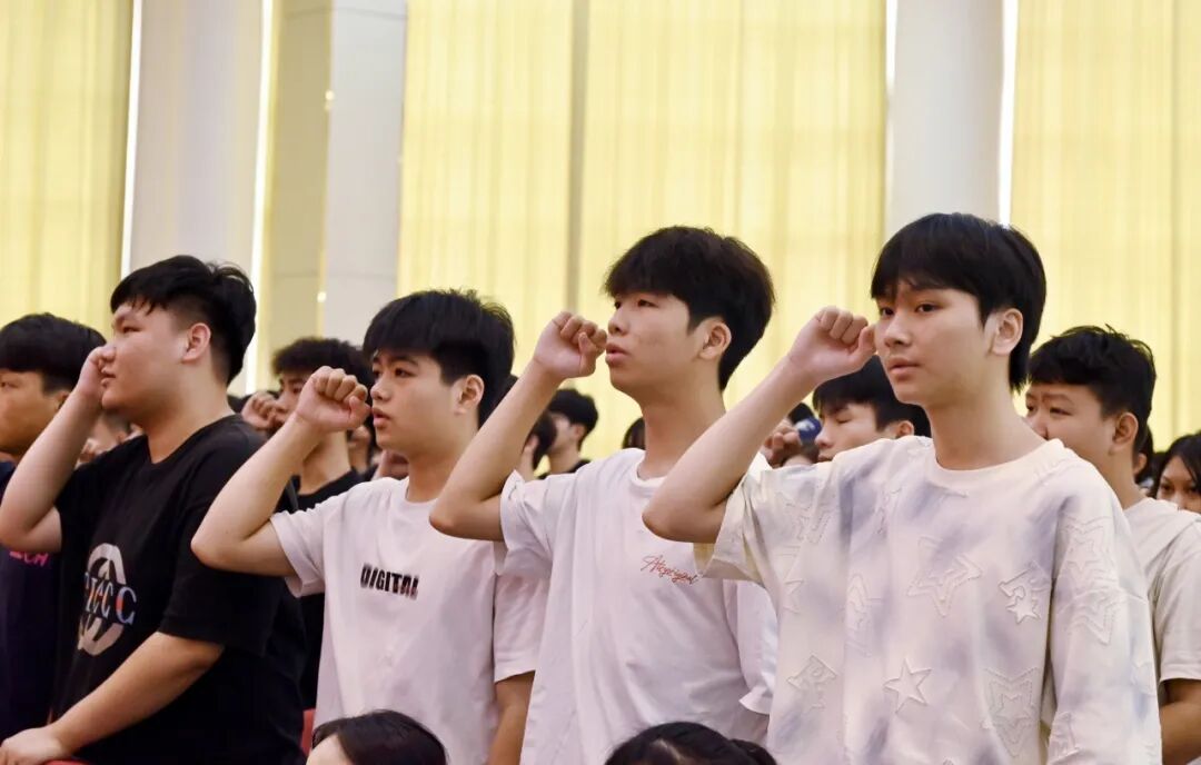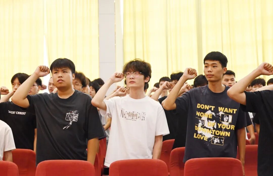 随后,在学生代表的领誓下,全体新生肃穆而立,举起右拳,庄严宣誓:“我是广西蓝天航空职业学院学子,我以青春的名义宣誓:我将秉承“志存高远,光耀蓝天”的校训……为实现中华民族伟大复兴的中国梦而努力奋斗!”铿锵有力的誓言,是他们对未来求学之路的郑重承诺,更是新时代青年勇担使命的坚定决心。